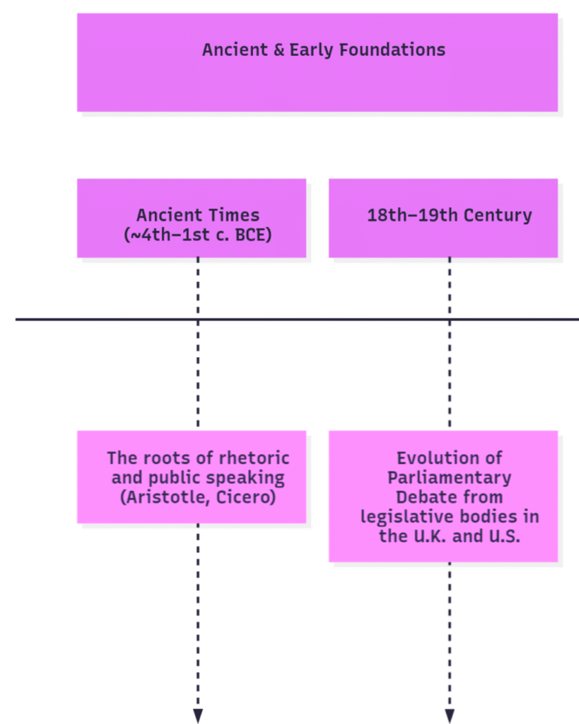 故事要從古希臘與羅馬開始。當時,辯論幾乎是公民生活的必修課。想像一下,哲學家或普通市民站在雅典的廣場上,圍繞某個議題你來我往,不只是辭令的比拼,更是影響命運與政治的重要力量。這段歷史提醒我們:辯論從一開始,就和「參與社會」緊密連結。對今天的學生而言,這代表表達能力始終是參與社會的第一步。